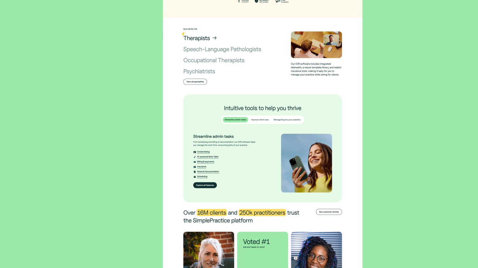 SimplePractice is a trusted leader, but as the product has grown, the homepage has become more complex. The opportunity isn’t reinvention it’s simplifying and sharpening the experience to drive stronger trial conversion.